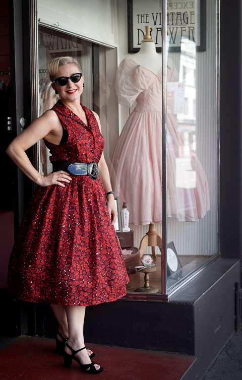 ‘From about 14 I was drawn to vintage clothing. I went through a number of years working in retail, studying acting and always in creative fields. One day I was unhappy with where my life was going. I walked in to an antique shop. I was looking at a shop counter and the guy asked where my shop was. I said that I didn’t have a shop but just loved the counter. He asked me if I did have a shop what would I have and it just came out. I said to him that it would be a vintage clothing shop. I had an epiphany at the moment, walked out and rang my husband and my mum straight away and said to them I know this sounds crazy as I have no stock but I just want to have my own vintage clothing shop. I didn’t buy the counter. Someone else bought the counter and I kick myself to this day that I didn’t but it was the catalyst. It really was like a bolt of lightning. I literally walked on air out of that antique centre because I knew what it was that I finally wanted to do with my life.’